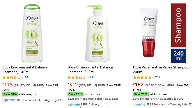 Amazon is running a discount offer on Hair care products they are giving up to 60% off on Dove Brand hair Defence, Repair, Moisture care products from Rs.129. Free shipping for prime members or after order above Rs.499.