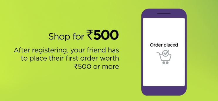 - Each unique referee is eligible for Rs.100 cashback on completion of successful delivery of the first order of minimum Rs. 500 in value (excluding Specialty and JIT products).