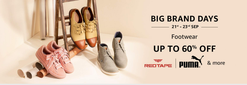 Hi all, planning a trip and confused about what to wear? Get your favorite pair of shoes during the Big Brand Days, that will be running between 21st - 23rd September. You can get up to 40-70% off.