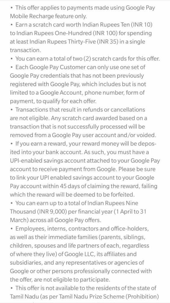 - Recharge For Rs.75 or More in a Single Transaction On Google Pay & Earn a scratch card worth Rs.10 to Rs.150.