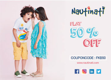 Nautinati is running an offer where you can Grab Nauti Nati Kids Range at Flat 50% off [ Use Code- FKB50], Hurry buy, here you can get a nice collectio of products, Limited Stocks.