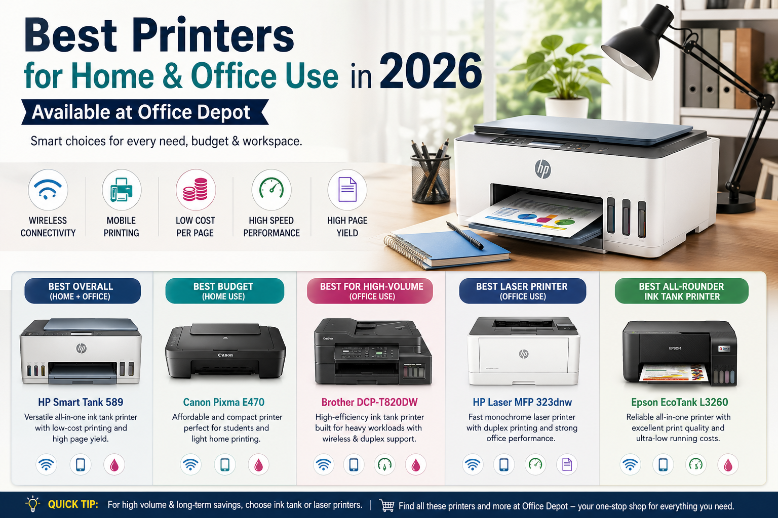 Best Printers for Home & Office Use in 2026 (Available at Office Depot)